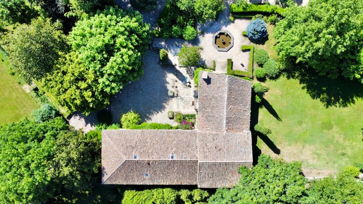 - Enclavé par un mur de pierre.