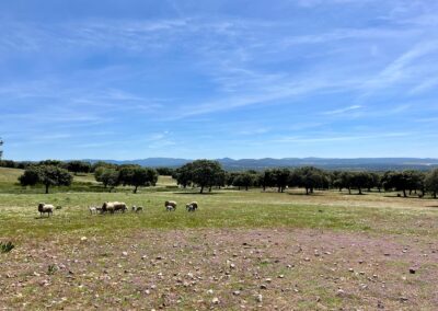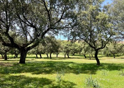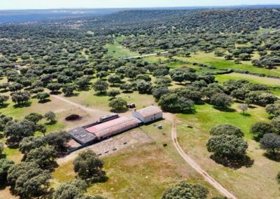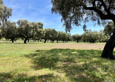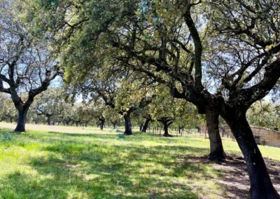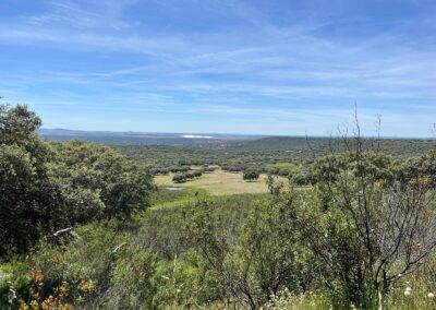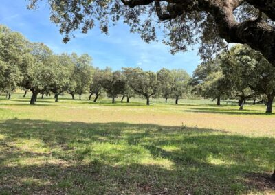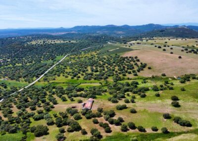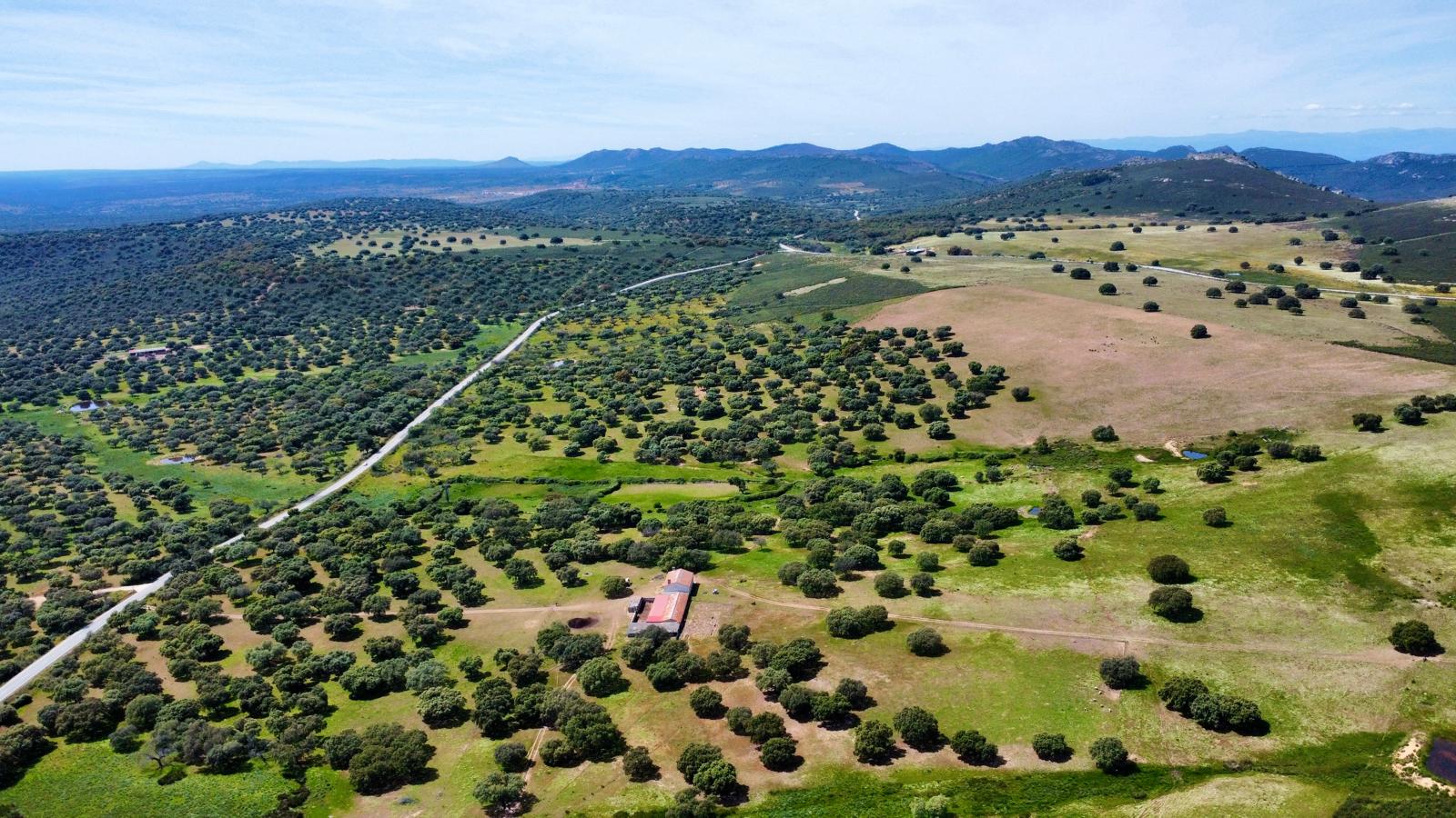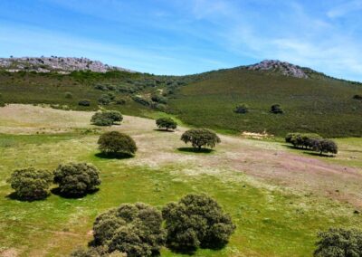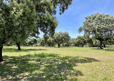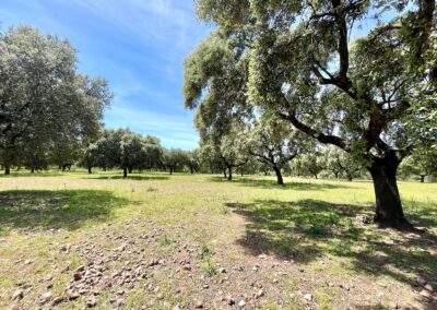 - Dehesa de encinas ondulada, con una parte de monte de jara más quebrado.
