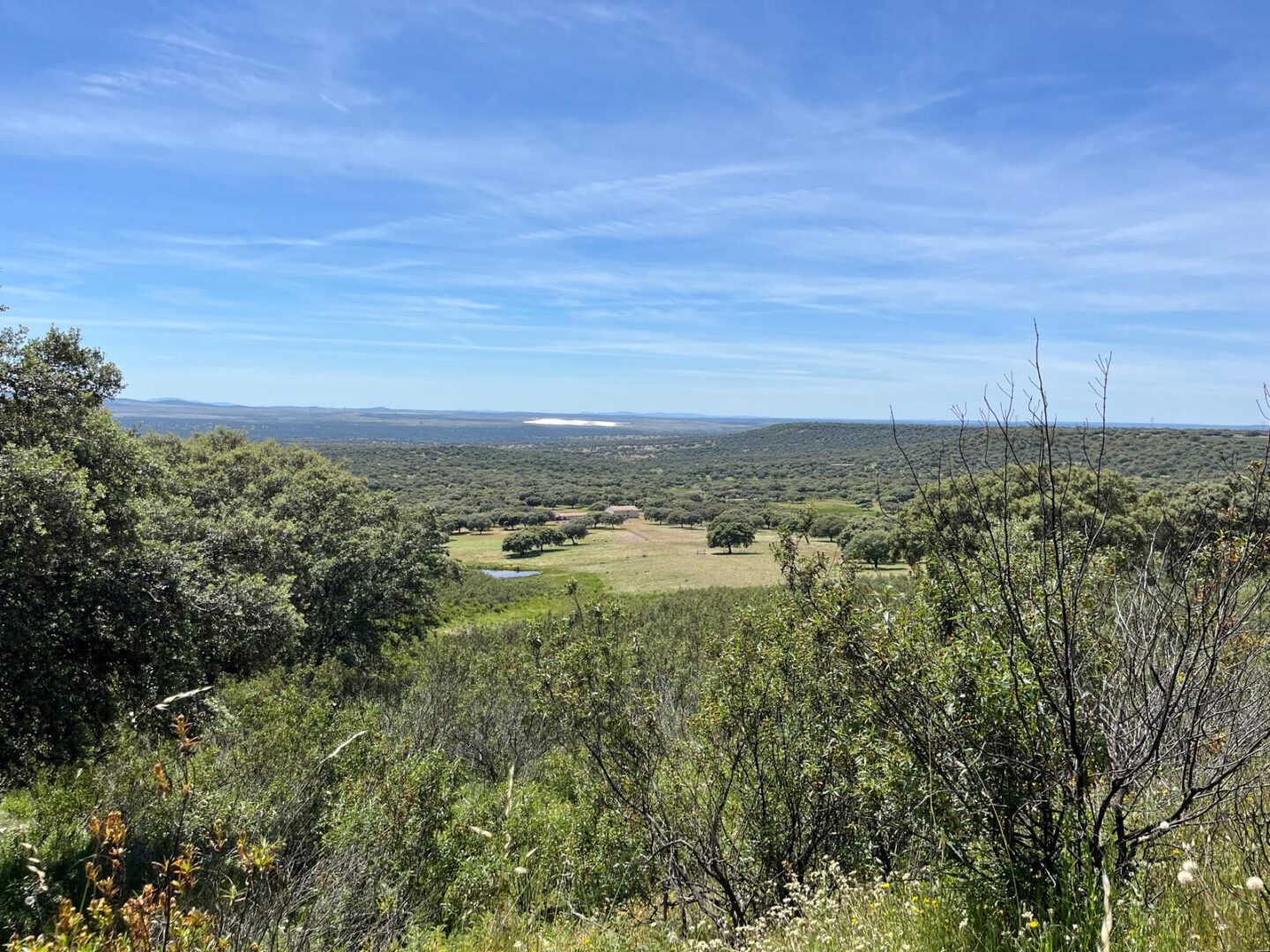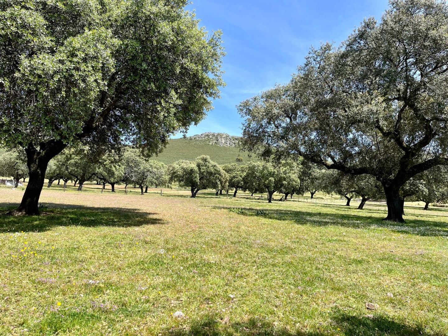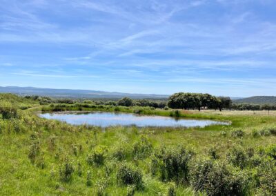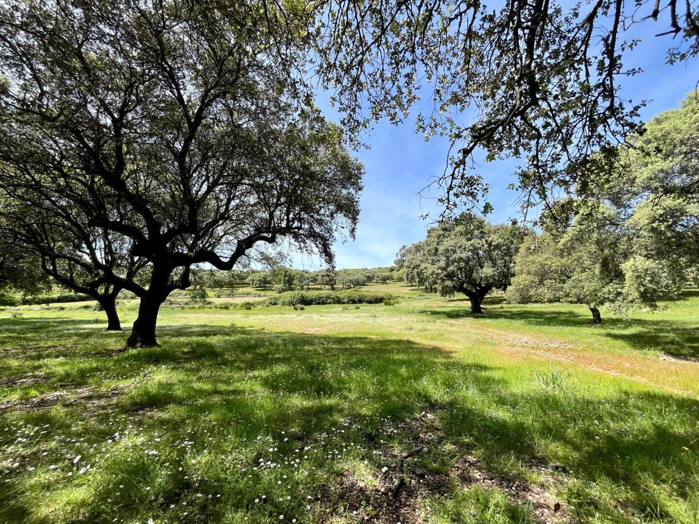 - Dehesa de encinas ondulada, con una parte de monte de jara más quebrado.